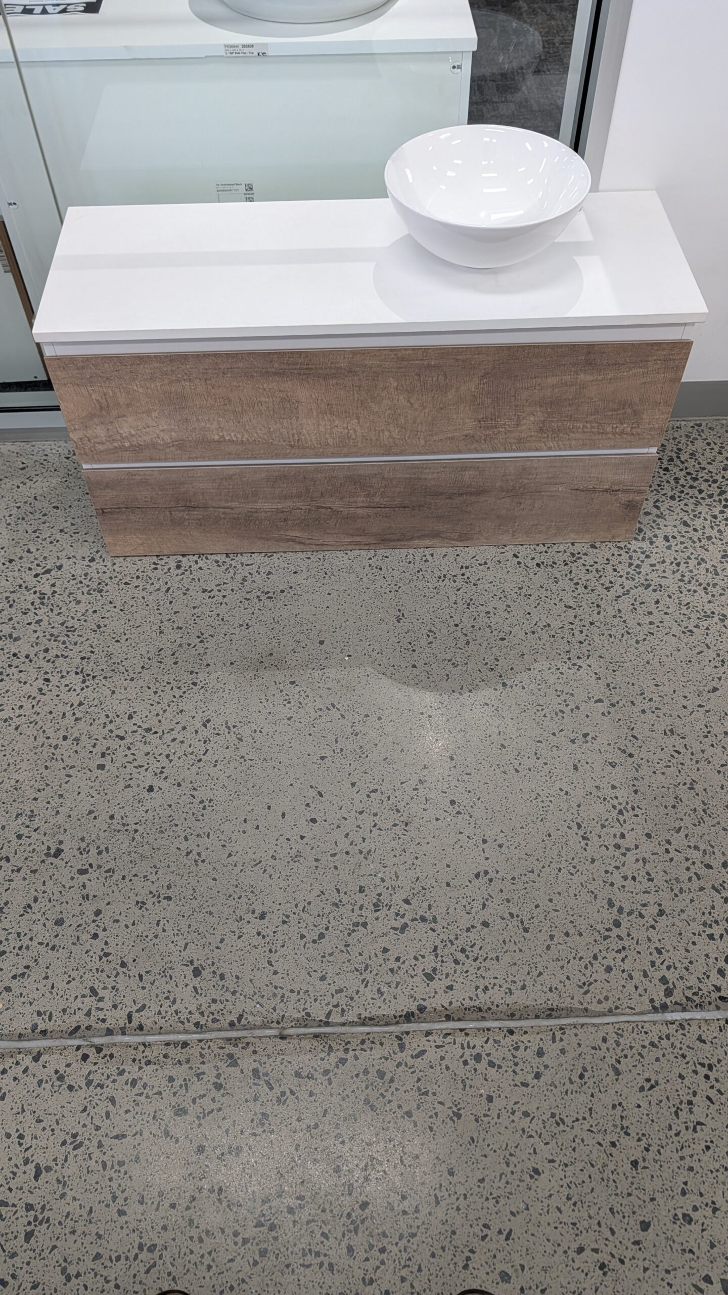 • Satin white cabinet with Oxidised beam wood drawer fronts